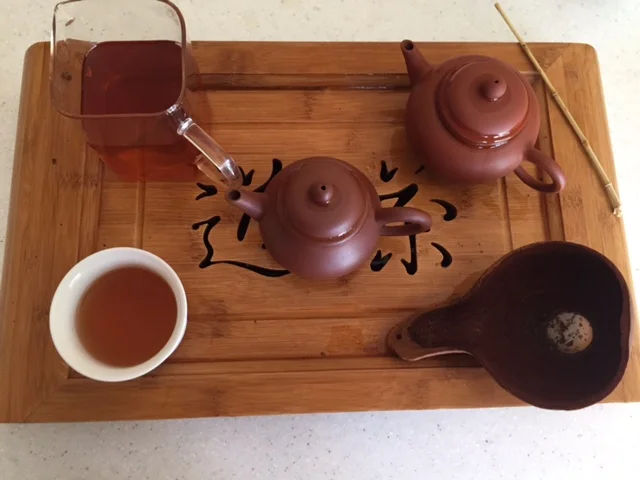An autumn tea from famed Yiwu - aged in Taiwan for six years. There is a light smokiness, and notes of almost burnt sugar, which will continue to mellow into a nice caramel. The after taste has strong chocolatey flavors. It has a rich, velvety texture attesting to its wild arbor origin. Great body and depth complemented by a visually appealing sunburned orange liquor.